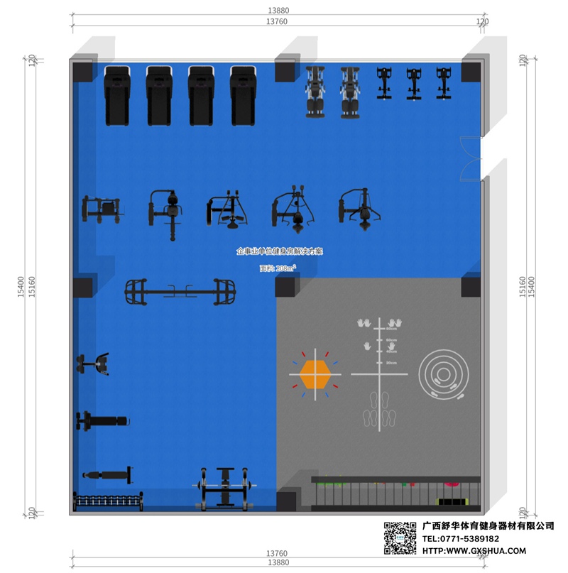 208m²企事业单位健身房 解决方案